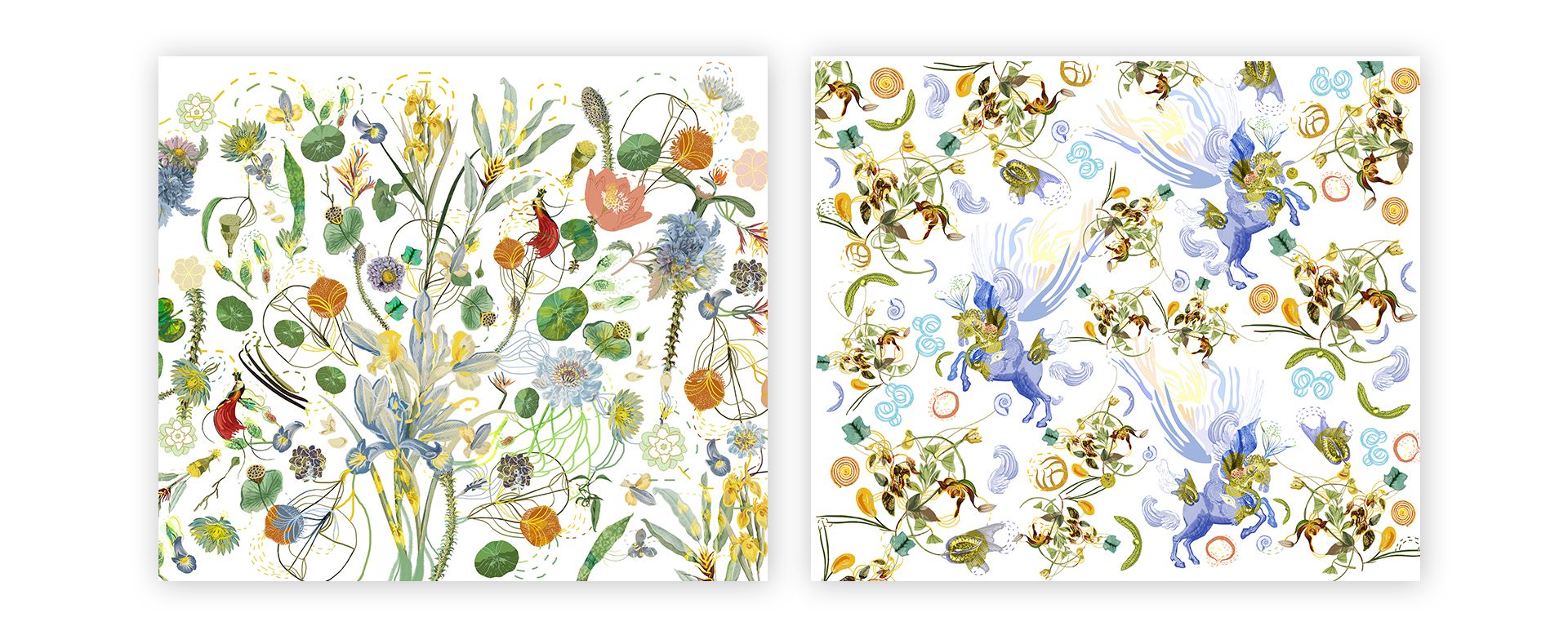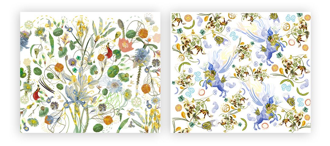 Paola設(shè)計(jì)的紋樣選取了花卉元素,通過她對(duì)色彩世界的探索和對(duì)植物神韻細(xì)節(jié)的敏銳捕捉