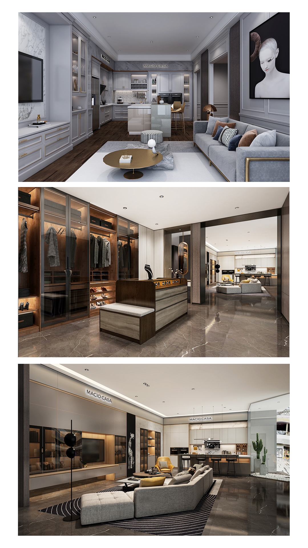 除產(chǎn)品展示及各功能空間合理組合外,空間體驗上還注重“五覺感受”,從多維度塑造塑理想生活方式