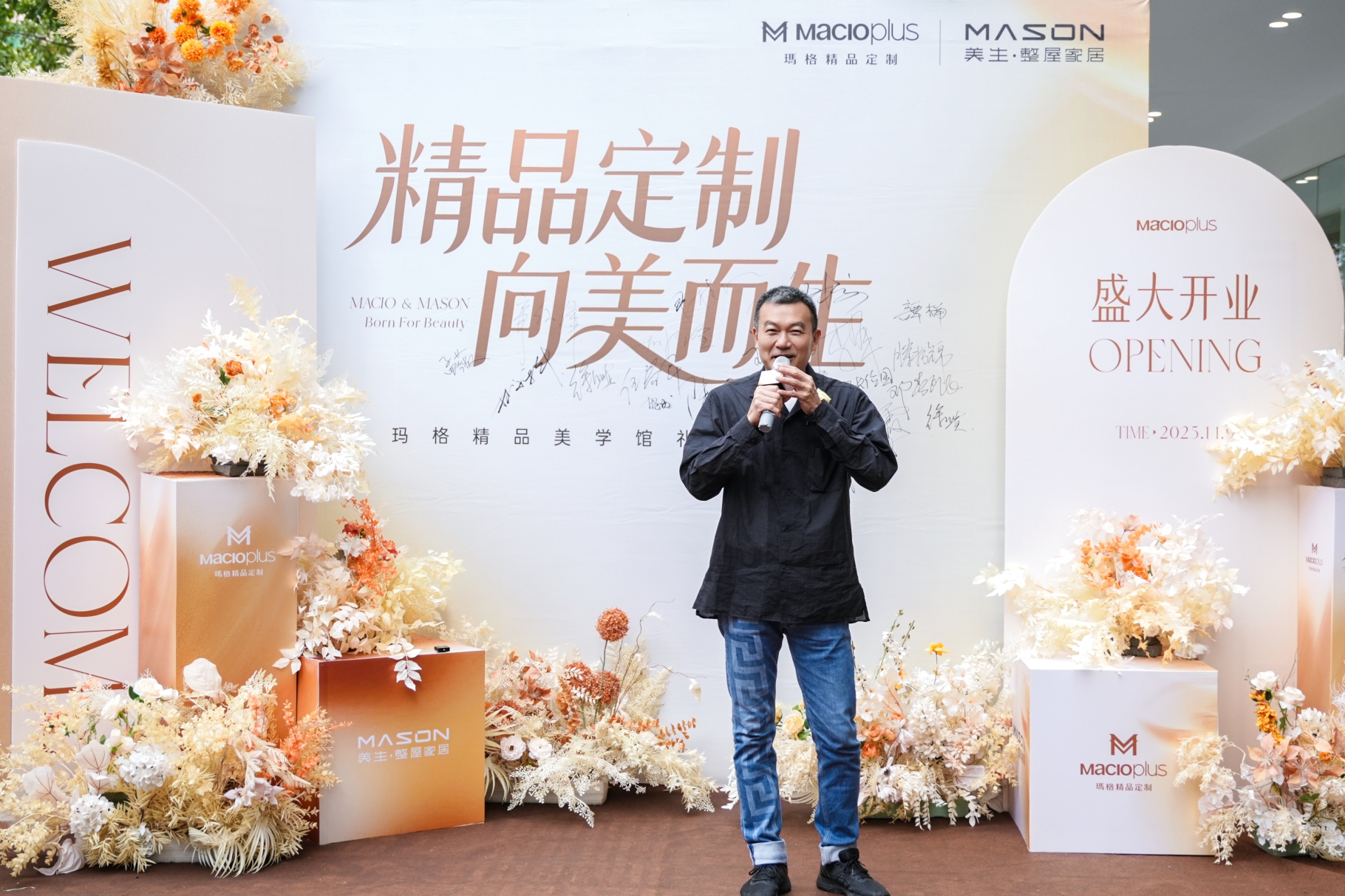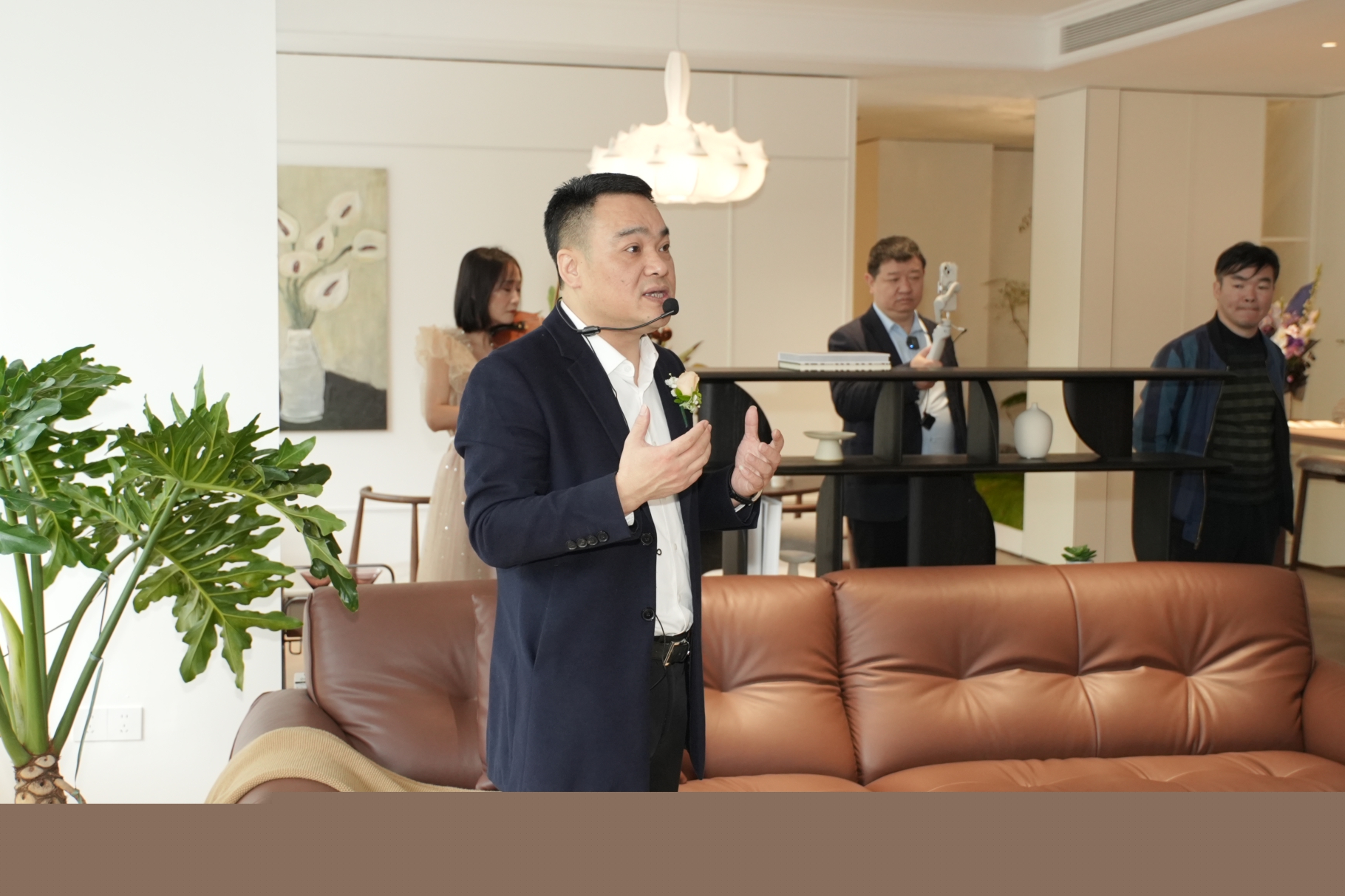 晨光微露,悠揚(yáng)小提琴奏響開業(yè)序曲,以音符勾勒空間美學(xué),為盛典注入優(yōu)雅格調(diào)。美生·整屋家居創(chuàng)始人:王海箭先生、BDSD吾界設(shè)計(jì)創(chuàng)始人:林文科先生、佛山森德家創(chuàng)始人:劉少華先生、達(dá)生堂創(chuàng)始人:楊建先生、瑪格家居高定事業(yè)部總經(jīng)理孫超華先生等多位重要嘉賓蒞臨現(xiàn)場。