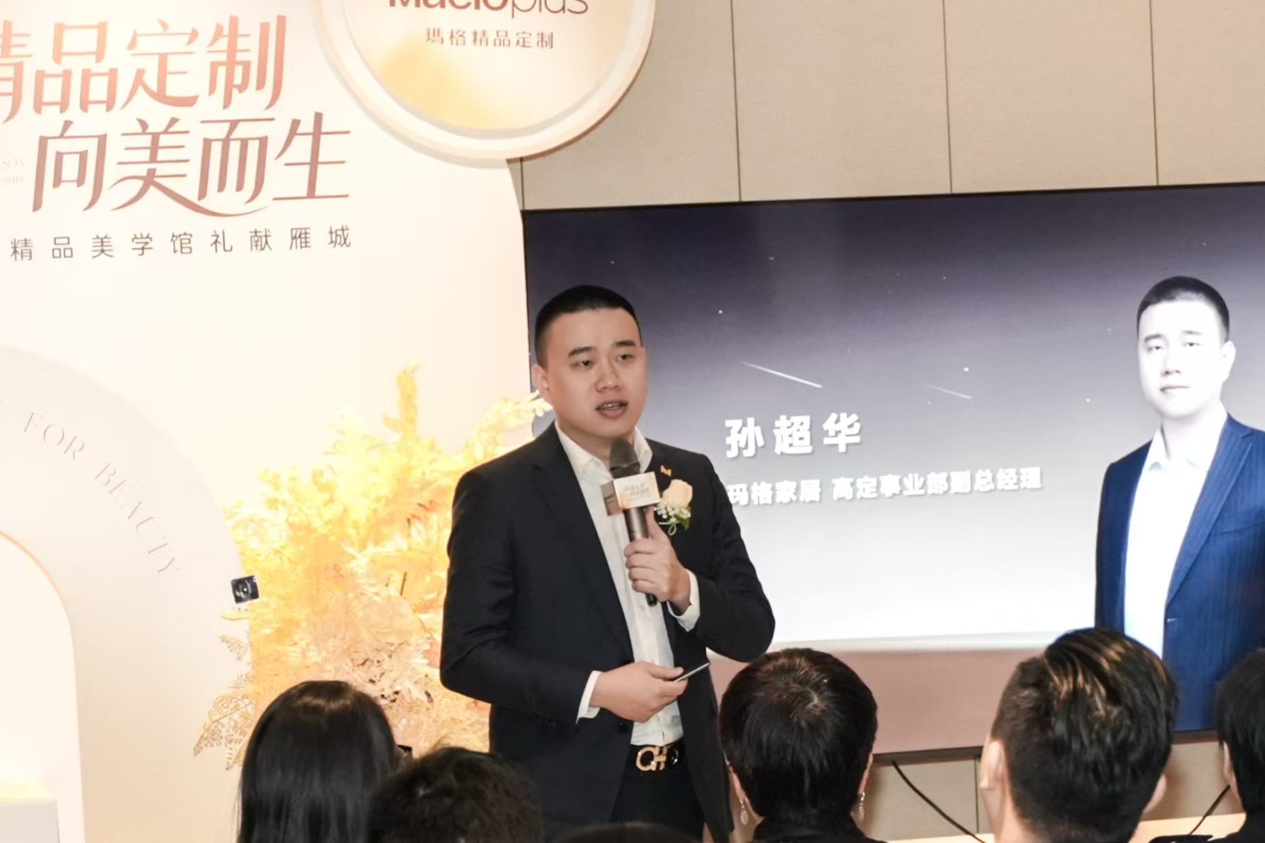 瑪格家居高定事業(yè)部總經(jīng)理孫超華先生登臺,深入闡述瑪格家居的品牌理念、多元化的全品類產(chǎn)品體系、品質(zhì)交付的核心實(shí)力、“瑪格制造”背后的匠心與科技以及客戶至上的服務(wù)理念。