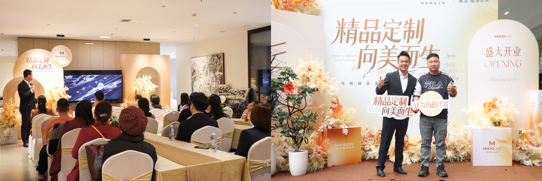 現(xiàn)場特別邀請品牌摯友KISS筱雅女裝品牌主理人賀姣女士、朝花夕拾創(chuàng)始人滕招錦先生登臺分享,堅(jiān)定選擇美生,是因?yàn)槠鋸目臻g的收納到用戶的生活方式進(jìn)行全案設(shè)計(jì),以及后面的安心服務(wù),每一個環(huán)節(jié)都很用心,令人感動,未來也將繼續(xù)選擇美生與瑪格共筑品質(zhì)生活。