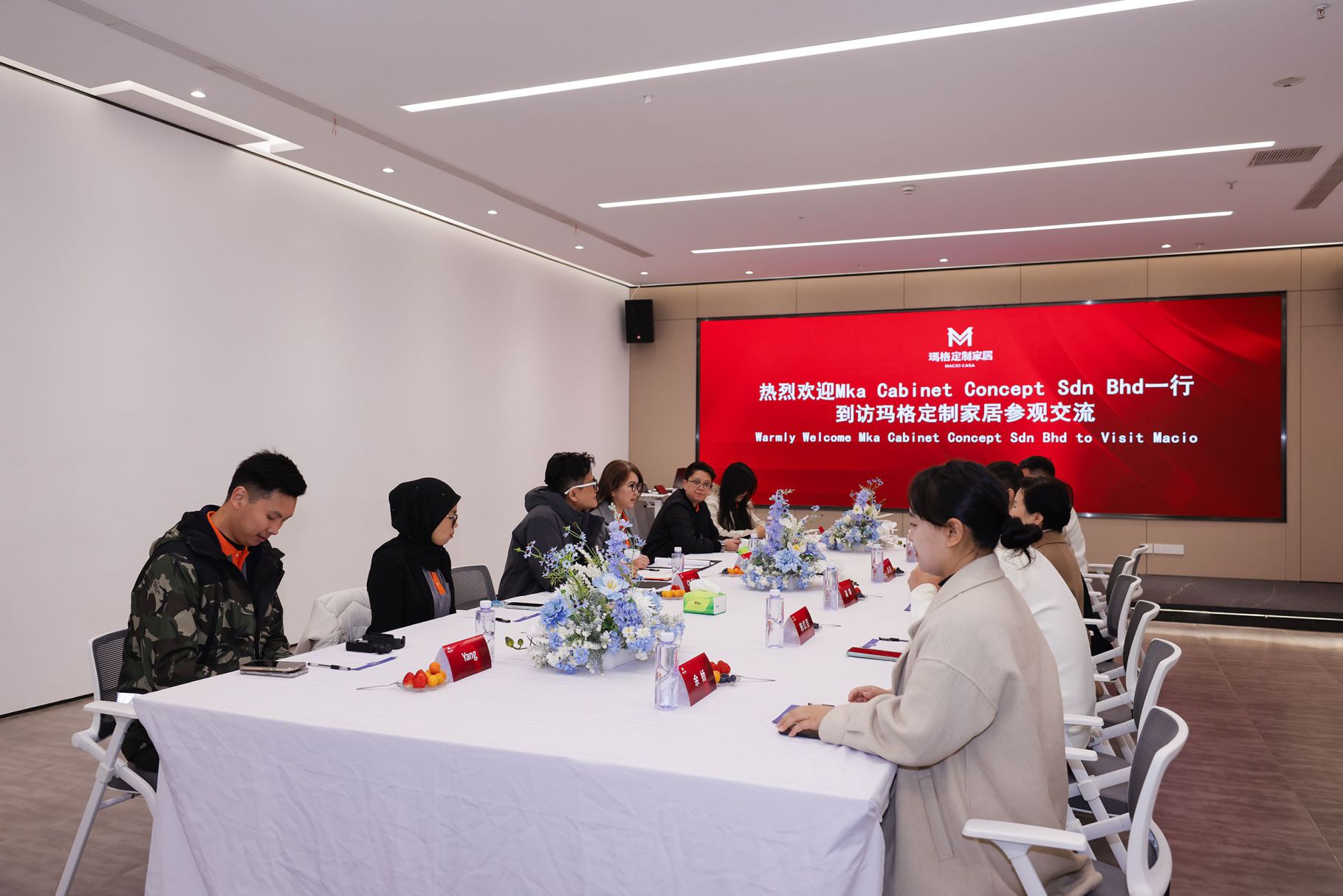 在董事長/總經(jīng)理特別助理蔡寶磊先生陪同下,Mka Cabinet Concept Sdn Bhd 高管一行先后參觀了品牌館、木文化博物館、全案設(shè)計中心展廳、智能工廠,對瑪格品牌實力、濃厚的木文化底蘊、領(lǐng)先的設(shè)計理念、嚴謹?shù)墓に嚇藴屎屯晟频漠a(chǎn)品體系給予了高度評價,對后續(xù)在馬來西亞市場的合作前景充滿信心。