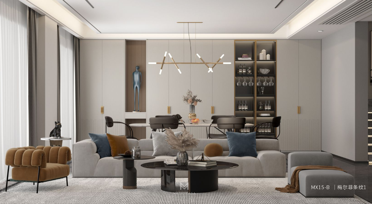 瑪格精選FAS級橡木、胡桃木等優(yōu)質(zhì)木材,通過指接工藝減少變形風(fēng)險,表面可做開放漆或木蠟油處理,保留木材呼吸性。其天然木紋與質(zhì)感,適合輕奢、新中式風(fēng)格,但需定期保養(yǎng)以防溫濕度變化。