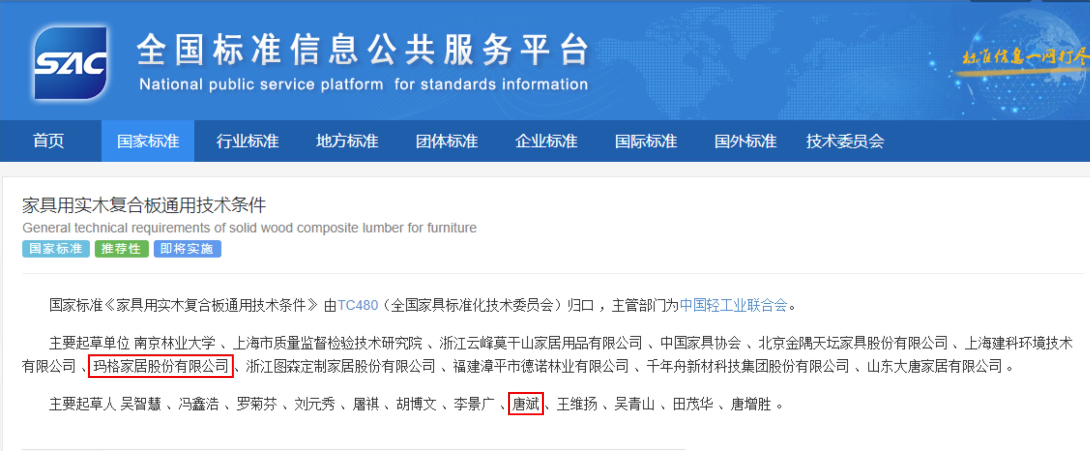 日前,由國家市場監(jiān)督管理總局、國家標準化管理委員會批準,南京林業(yè)大學(xué) 、上海市質(zhì)量監(jiān)督檢驗技術(shù)研究院、中國家具協(xié)會、瑪格家居股份有限公司等 10 余家企事業(yè)單位共同起草的《家具用實木復(fù)合板通用技術(shù)條件》(GB/T 46014—2025)國家標準正式發(fā)布,該標準將于 2026 年 2月 1 日起正式實施。