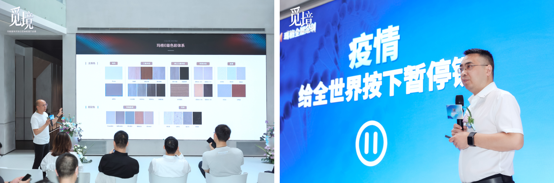 在本次活動上,瑪格“萬象”系列、“帕爾馬”系列、“彼得沃克Ⅱ”系列,以及“城市微光”系列、“云端之境”系列和“森夢奇緣”系列等2022年新品系列驚艷亮相,瑪格產(chǎn)品研發(fā)設(shè)計中心副總經(jīng)理萬川先生現(xiàn)場為來賓進(jìn)行介紹,從產(chǎn)品的設(shè)計概念、色彩體系、場景應(yīng)用等多個方面開展分享。